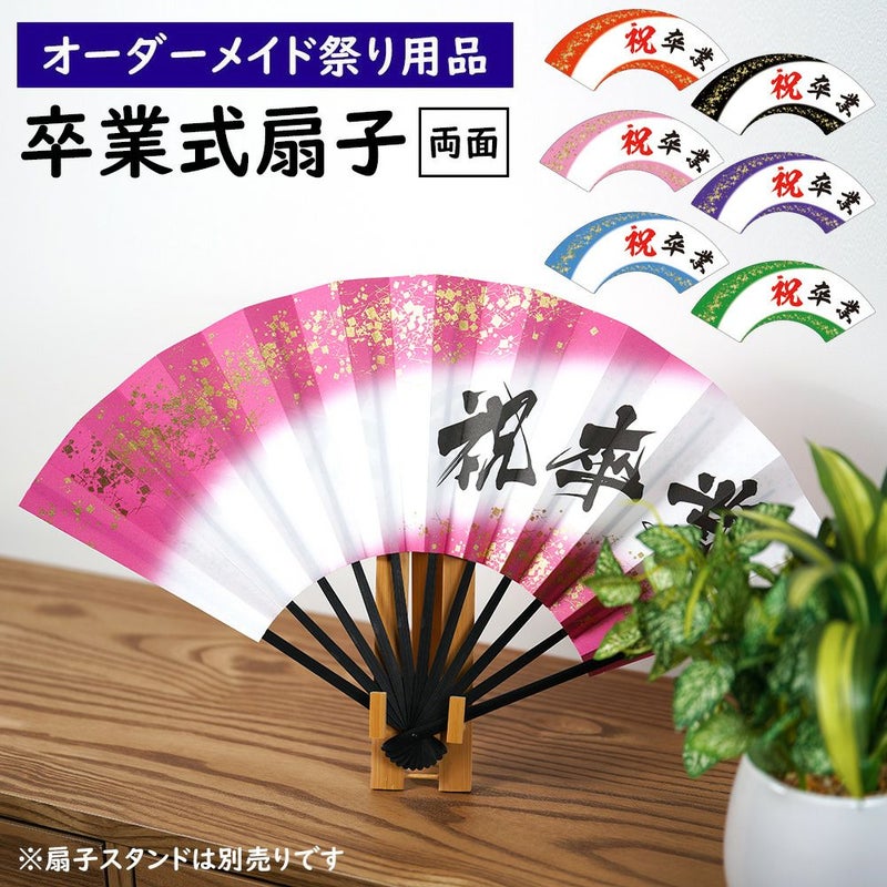 特注 卒業式扇子制作 黒骨 金プリント入り 大サイズ 両面