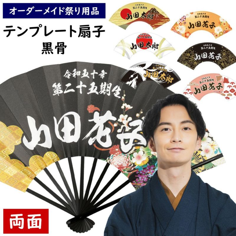 特注 成人式扇子 黒骨 テンプレート 大サイズ 両面
