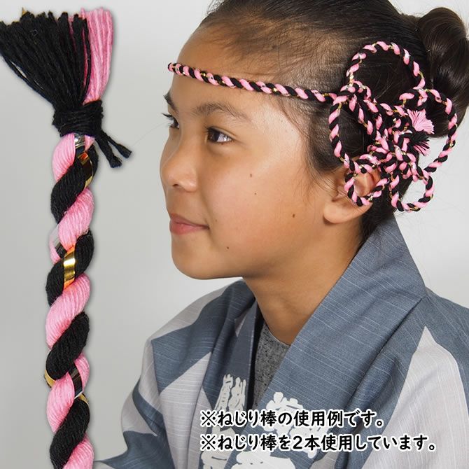 金属製のワイヤーや芯は入っていませんが、かなり固くねじってありますので、形がつくりやすく、はちまきとして頭に付けていただいた場合でも先端がしっかり立ちます。ねじりはちまきや髪飾りとしてお使いいただくのにぴったりの商品です。