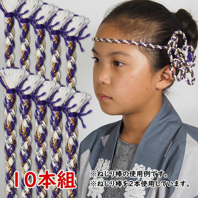 金属製のワイヤーや芯は入っていませんが、かなり固くねじってありますので、形がつくりやすく、はちまきとして頭に付けていただいた場合でも先端がしっかり立ちます。ねじりはちまきや髪飾りとしてお使いいただくのにぴったりの商品です。