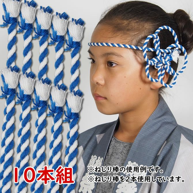 金属製のワイヤーや芯は入っていませんが、かなり固くねじってありますので、形がつくりやすく、はちまきとして頭に付けていただいた場合でも先端がしっかり立ちます。ねじりはちまきや髪飾りとしてお使いいただくのにぴったりの商品です。
