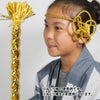 花結び髪飾りをねじり棒につけて、祭りヘアアレンジを楽しむことができます。ぜひねじり棒に合わせてご利用ください。