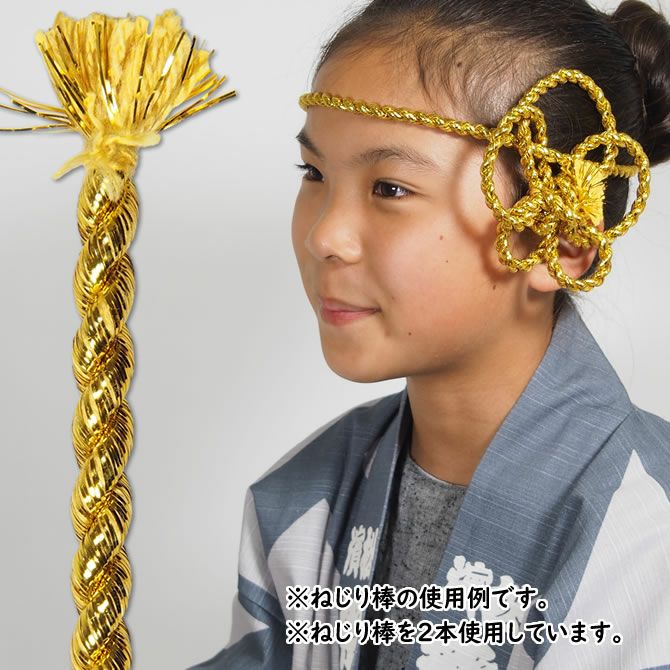 金属製のワイヤーや芯は入っていませんが、かなり固くねじってありますので、形がつくりやすく、はちまきとして頭に付けていただいた場合でも先端がしっかり立ちます。ねじりはちまきや髪飾りとしてお使いいただくのにぴったりの商品です。