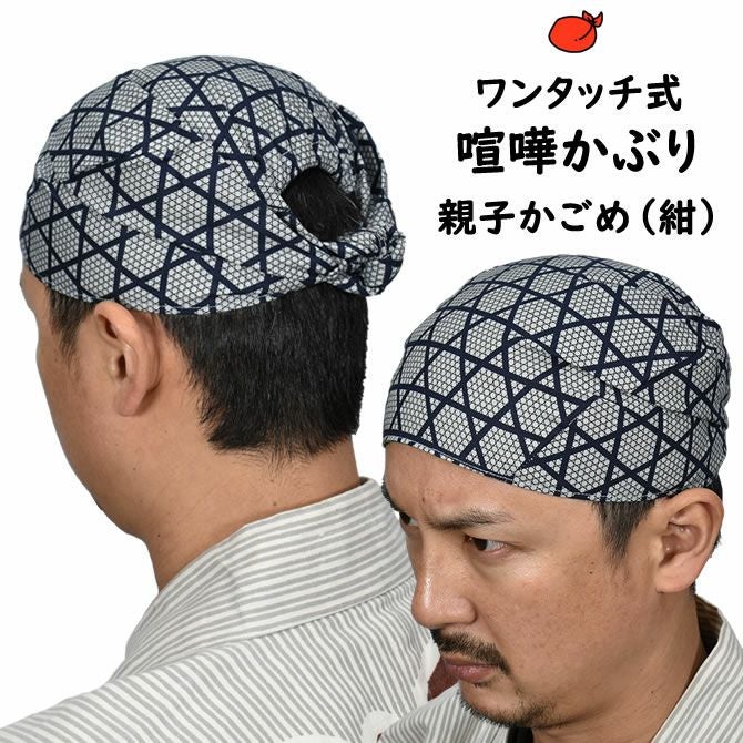ワンタッチ式 喧嘩かぶり 親子かごめ 紺