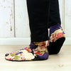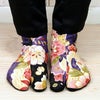 靴下タイプの雪駄用岡足袋です。こはぜが付いていないので、ソックスのように簡単に履くことができます。ストレッチ素材なので、ぴったり足にフィットします。お祭り衣装に良く似合う、和柄の足袋ソックスです。