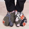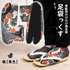 靴下タイプの雪駄用岡足袋です。こはぜが付いていないので、ソックスのように簡単に履くことができます。ストレッチ素材なので、ぴったり足にフィットします。お祭り衣装に良く似合う、和柄の足袋ソックスです。