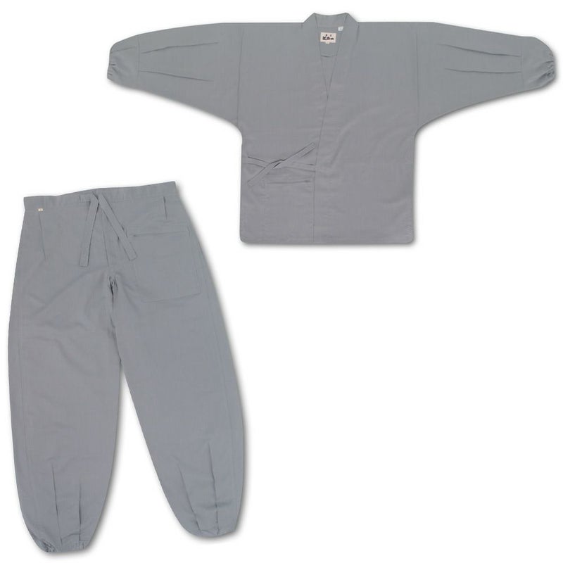 東京江戸一 作務衣上下セット さむ上下 #100麻混 鼠 特大