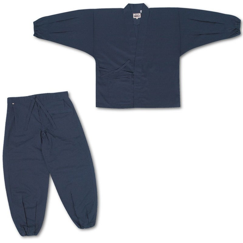 東京江戸一 作務衣上下セット さむ上下 #100麻混 紺  巾広
