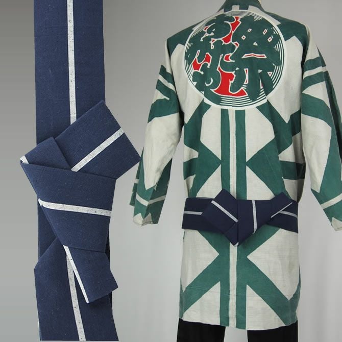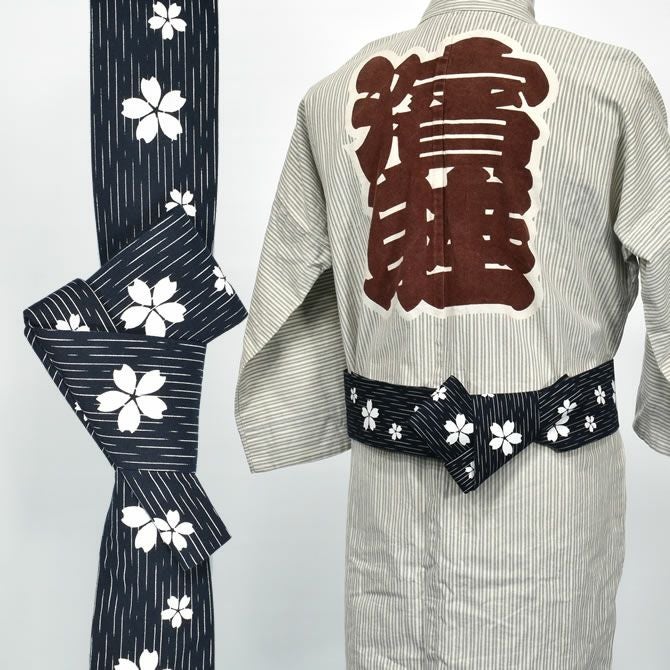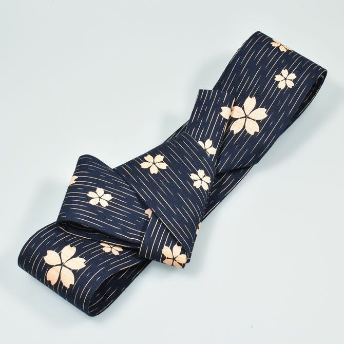 ワンタッチ角帯 紺 ベージュ桜