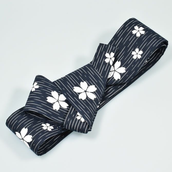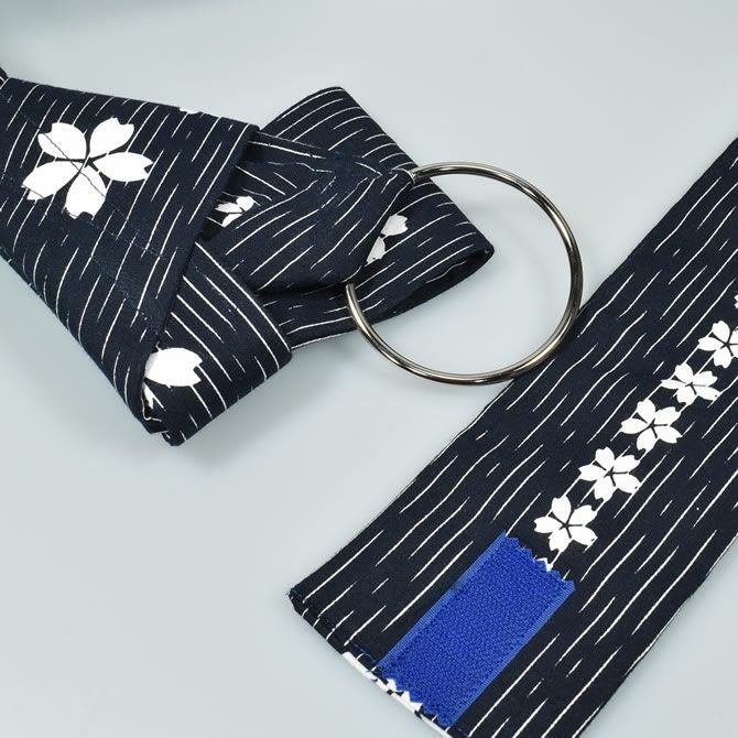 ワンタッチ角帯 紺 白桜