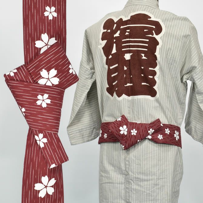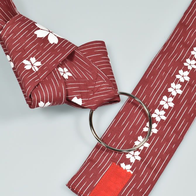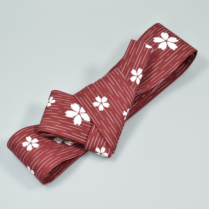 ワンタッチ角帯 エンジ 白桜
