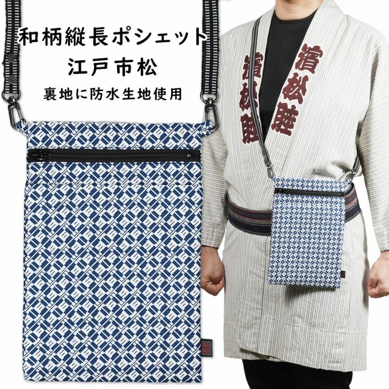 お祭りポシェット 防水 縦長ポーチ 江戸市松