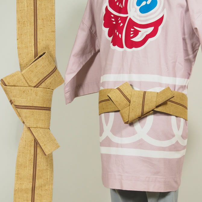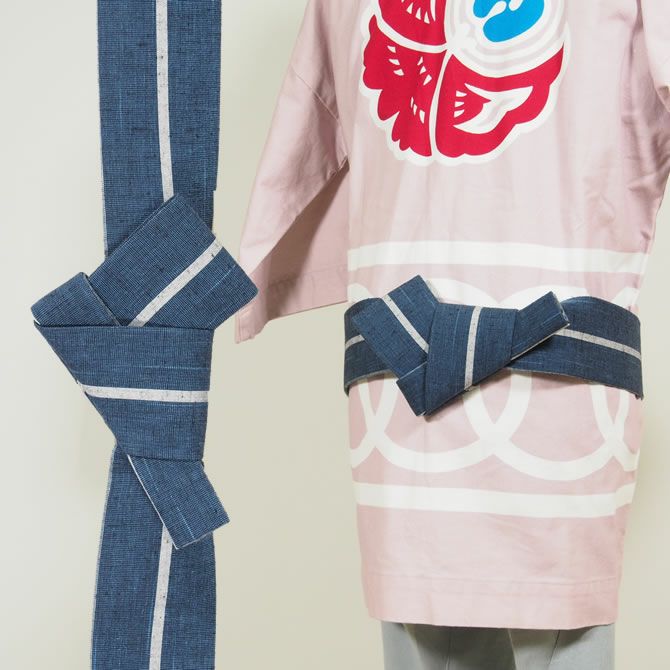 ワンタッチ角帯 紺 ベージュ桜