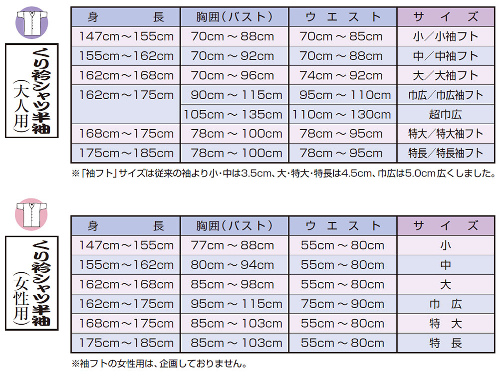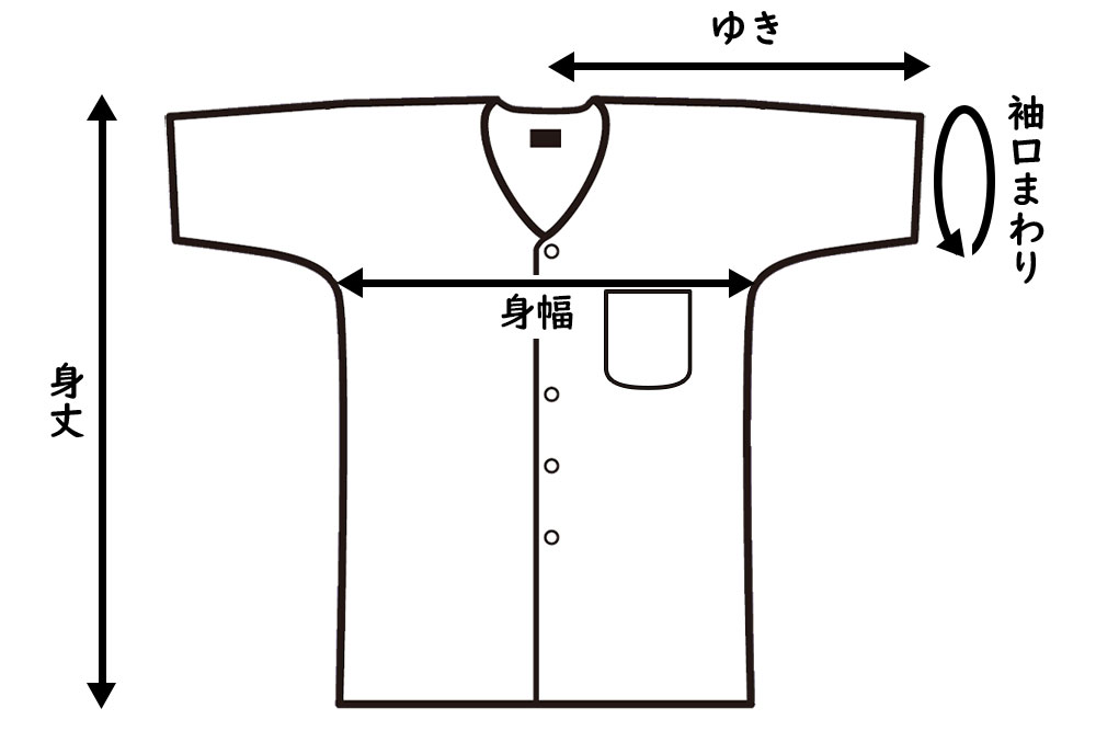 東京江戸一 くり衿シャツ サイズ表