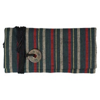 薄くて軽いので腹掛けのポケットや祭りポシェットに入れやすく、担ぎ手の方には最適だと思います。留め具に古銭を使っているのが粋ですね。道中財布自体は珍しいものではないですが、すみたやさんで取り扱っているものは内側のポケットが2つに分かれていてカード入れにもなることと、やはり古銭を使っているという点が他社製品と被らない良さだとと思います。開いた状態で届き、自分で綺麗に折り目を付けることができるのも良かったです。畳んだときに生地がズレていると見栄えが悪いので...。